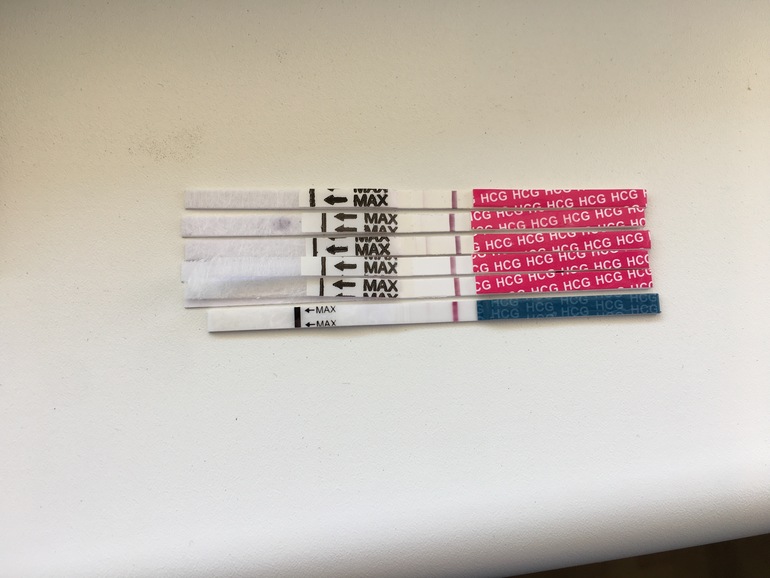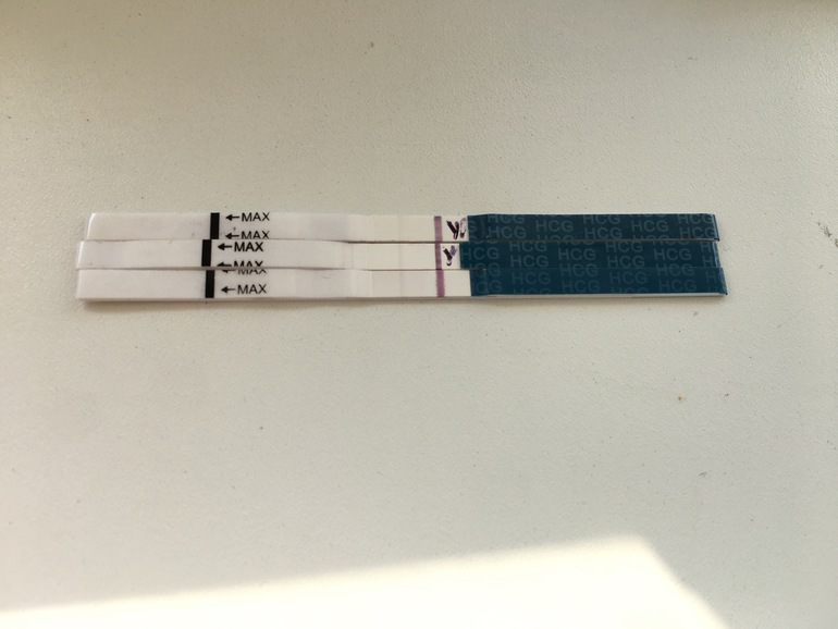 Тесты позавчера, вчера и сегодня утром. По-моему полоска ярче. Прегнил бы наверное наоборот слабел? Но меня смущает что хгч было 5,8 вчера. Разве с таким хгч бывают такие полоски ?