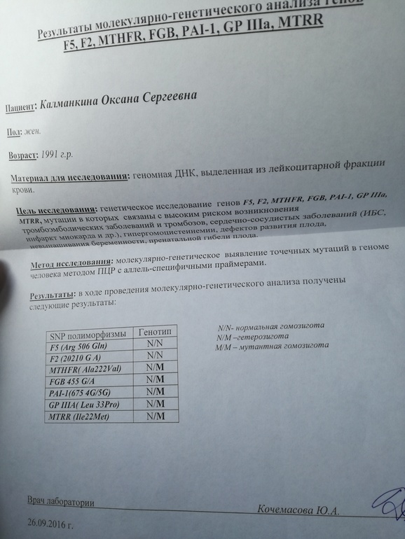Я сдавала ещё интерлейкины, потому что у меня антикардиолипины повышены. Сдавала протеин С и S. Сдавала тэг и агрегацию. У меня, при таких же мутациях, скорость образования сгустка повышена, плотность сгустка понижена, остальное в норме, интерлейкин норм. Сейчас делают анализ на поломку гена интерлейкин. Мне назначили клексан 0.2, хотя я высокая и не худенькая и капельницы иммуноглобулинов.