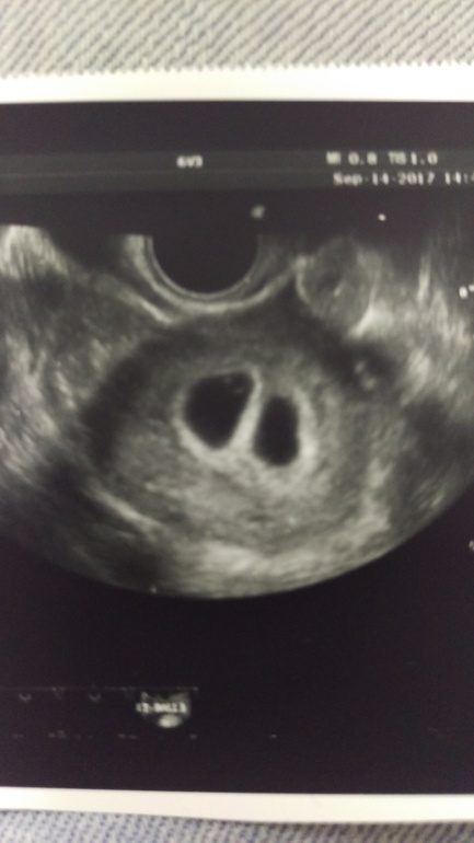 В полости матки два плодный яйца вроде по 16мм в них по жм и эмбриону и оба сб+ (первый ктр 3,5 мм, второй ктр 3,0 мм)