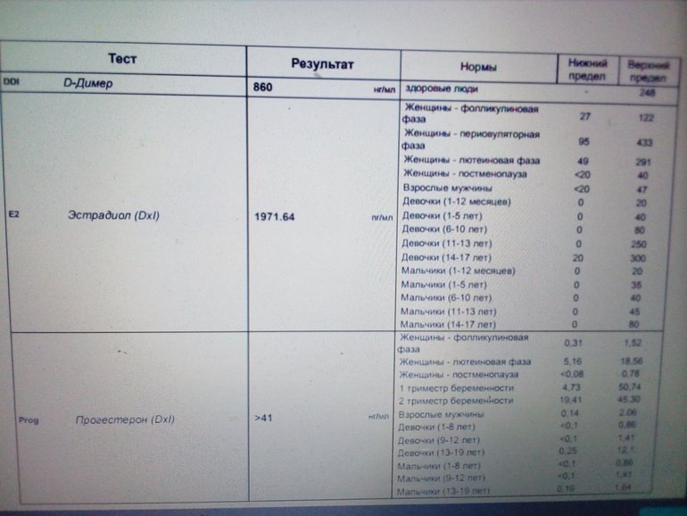 Анализы и процедуры. Помощь в расшифровке результатовПолучили анализы, сдавала за день до переноса. в поддержке прогестерон 600, дивигель и клексан 0,4. Ддимер большой?! как вы думаете? как остальные показатели?