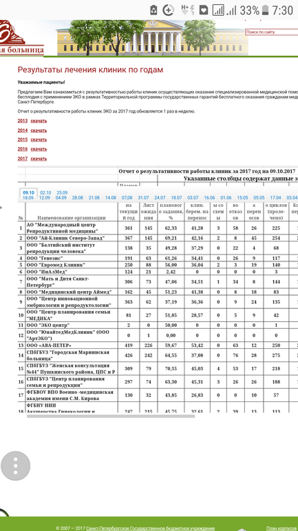 Клиники,врачи,санатории (отзывы и рекомендации)Девчули, хотим попасть в этом году, смотрю по проценту беременностей лидирует же 44 в Пушкине, аж 44%, у остальных не дотягивает до 25