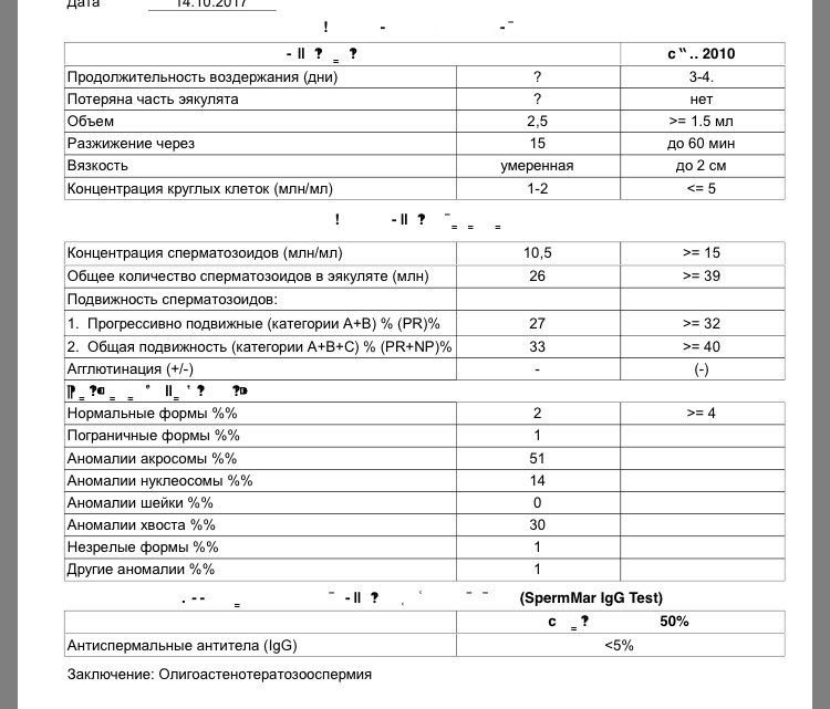 А морфология какая? Там были % по Крюгеру? Лучше наверное с этим анализом его запихнуть ко врачу, пусть врач всё объясняет...