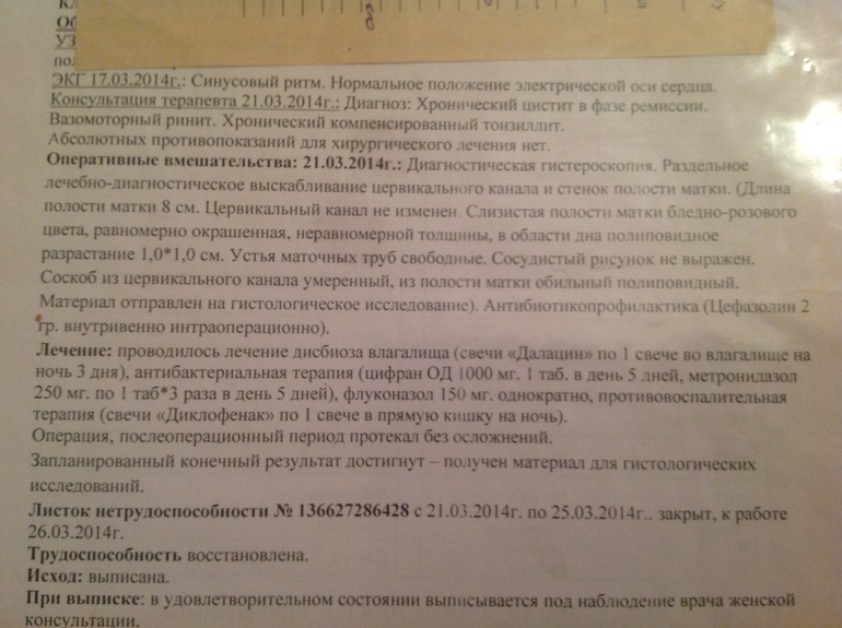 Посмотри выписку что написано, почистили и отправили материал, а уже в материале нашли клетки полипа. Вот и беспокоюсь, вдруг полип остался или его часть.