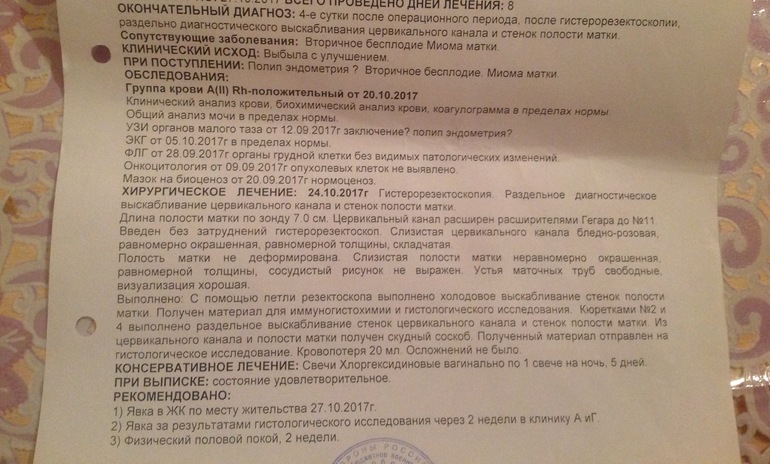 Я все думаю и прихожу к такому же выводу, судя по тем действиям что они произвели, у меня взяли соскобли и там оказался кусок полипа, но я так понимаю его не удалили, так как полип обычно на ножке, когда раньше его удаляли, то писали поверхностное выскабливание, а где полип глубокое выскабливанием. Получается с таким результатом в ЭКО лучше не идти, а идти опять на гистеру?