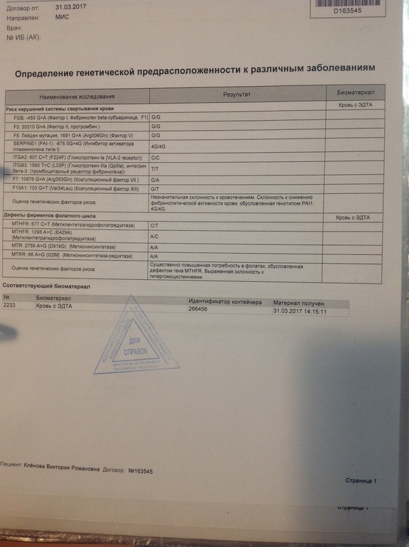 После посещения гематолога сдан кариотип (у обоих норма), hla - 3 совпадения. Сделала плазмаферез 5 сеансов, прокапали иммуноглобулин в соответствии с рекомендациями гематолога. Гомоцистеин - опять норма. Сдала еще витамин Д - ниже нормы, стала пить аквадетрим.