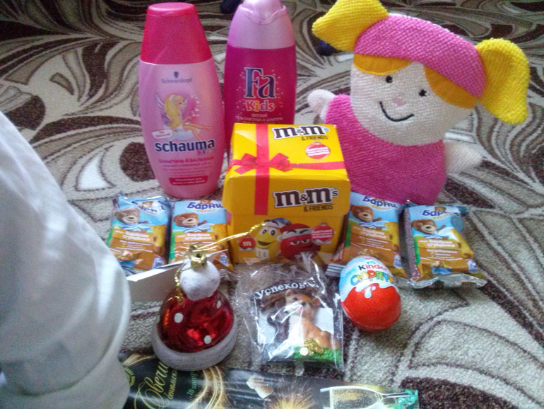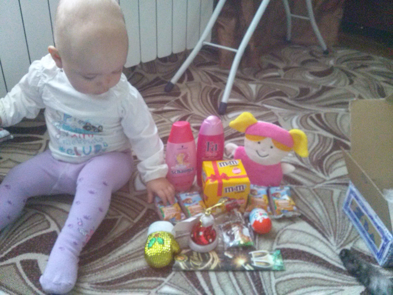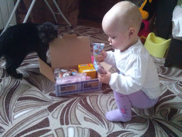 Доченька впервые получает посылочку и поэтому была в восторге, Викуле очень-очень все понравилось!
