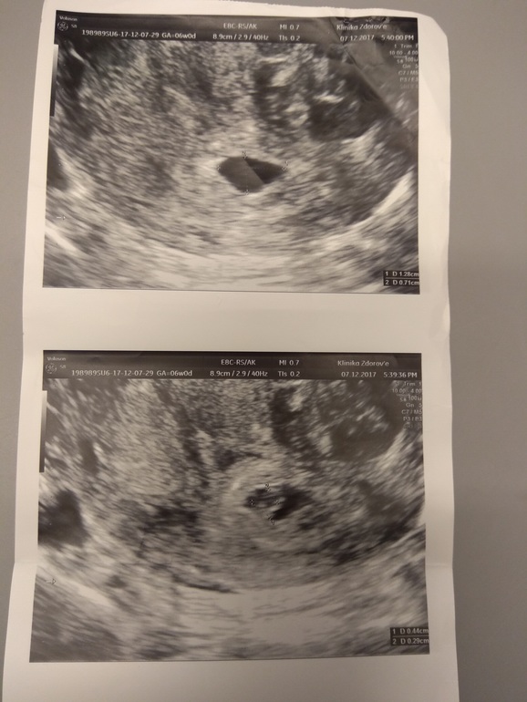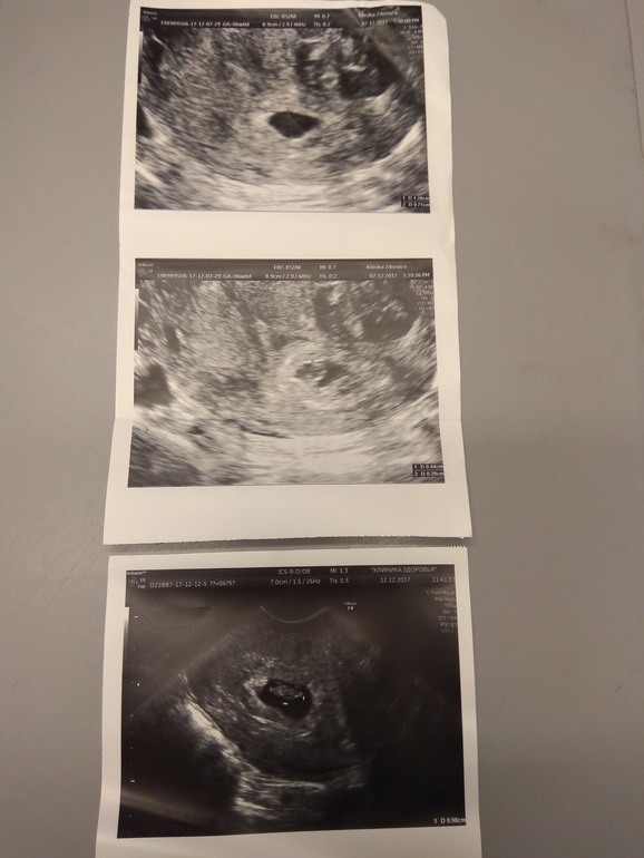 Больше ХГЧ не сдавала,так как после ЗБ каждый анализ был как пытка,особенно его ожидание и мысли...страхи...мысли....По этой же причине не пошла смотреть расположение плодного яйца,а решила идти сразу смотреть есть ли сердечко.Итак, 07/12 (на 28дпп) решила ехать сдаваться.Сначала Ре не увидела эмбриончик,потом сказала что вроде как что-то есть и направила меня на УЗИ.И вот там мне и сказали что все бьется,но плодное яйцо деформировано (сказали тонус нужно снимать) и маловато-11мм. Далее Ре сказала что у меня поддержка максимальная (Прогинова 2т/2раза,Прогестерон 2,5% 2мл или Крайнон 8% 2 аппликатора,Дюфастон-2т/2раза,Ангиовит-1т,Актовегин 200мг/3раза,Клексан 0,4,Магне Б6 -1 утром,1 в обед,2 вечером,Ношпа-2т/3 раза) , сказала что добавлять ничего не будет (только ношпу от тонуса),чтобы я сдала ХГЧ и через неделю пришла на УЗИ.И вот тут начинается самое интересное. ХГЧ 09/11-9681...то есть сильное отставание.Отмечу что за неделю до этого поменяла маслянный прогестерон 2,5% по 2 ампулы на 2 крайнона,после чего по анализам прогестерон упал (хотя и все врачи говорят что он в крови весь не определяетсяи моя Ре тоже сказала что это ерунда).После того,как я получила ХГЧ-срочно вернула уколы прогестерона и написала РЕ.Она сказала чтобы я срочно приехала на УЗИ.И вот я вчера 12/12 примчалась на узи а мне узистка "Чего вы приехали,сердцебиение 128 ударов в минуту".Все нормально развивается.