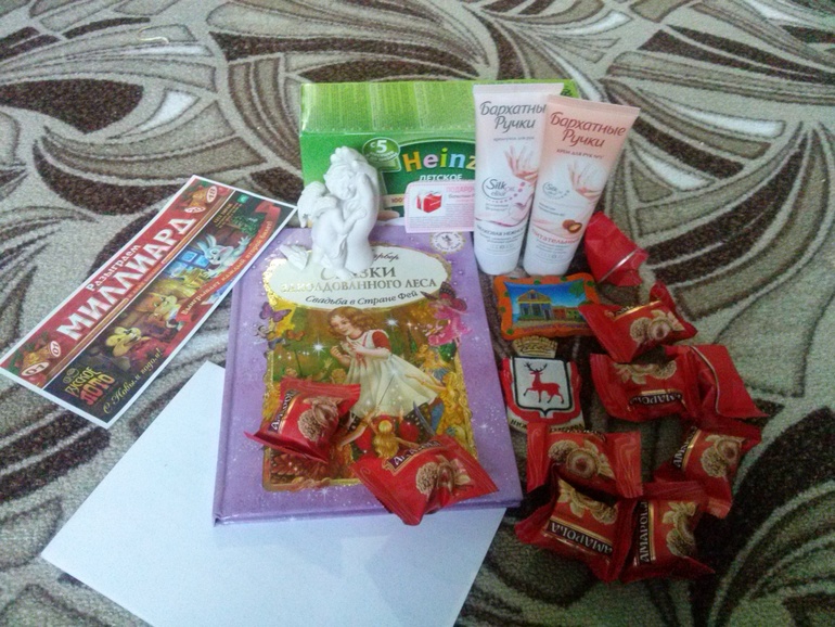 (на почте пришлось распаковать россыпью конфеты и коробку с кремами, потому что не было почтовых коробок других), фух, до больницы успела отправить))
