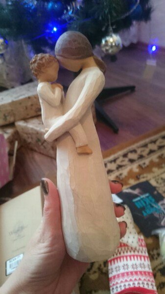 Затем я решила открыть коробку и просто стала плакать. Я даже не ожидала .это так трогательно. Там... там была статуэтка как мама держит свое дитя на руках.