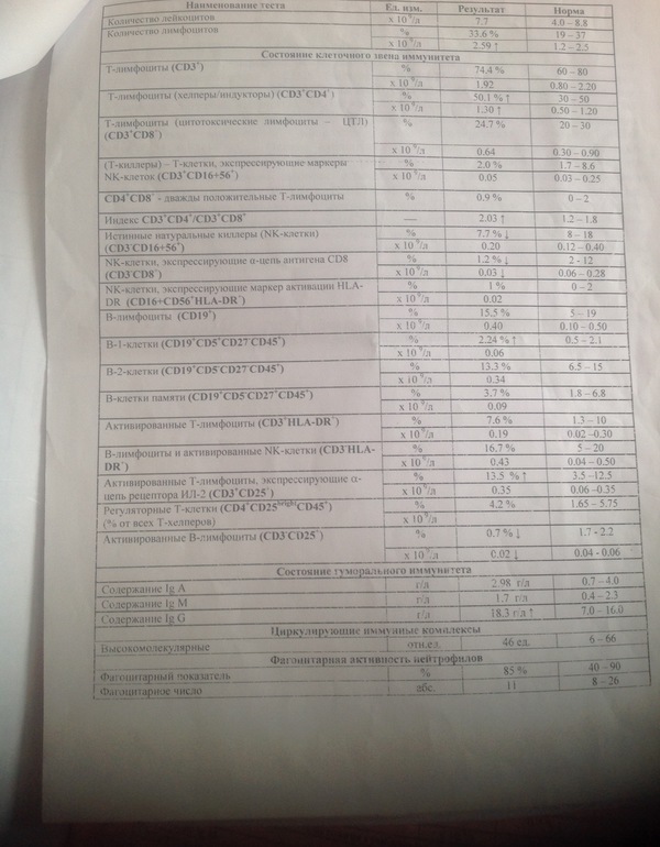 Судя, по отклонениям, у вас похоже воспаление. Лучше обратиться у иммунологу. Как давно сдавали? Я каждую неделю сдавала, и каждый раз результаты были разные. Так что , если анализ старый, то он не правдив.