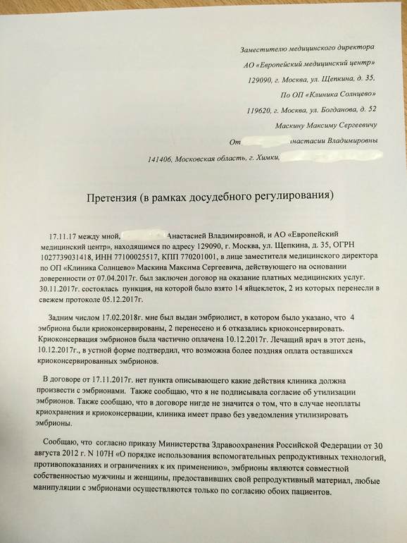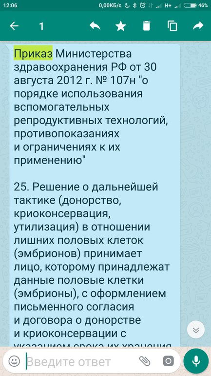 Все об эмбрионах (+ПГД и Хэтчинг)Здравствуйте. Я знаю, что я плохая, что не принесла 60000 р. на криоконсервацию всех, но всё же, осмелюсь спросить....Эмбриолог на пункции сказала, что можно заморозить по 3 шт. на соломинке, и получится 2 соломинки с шестью эмбрионами 4аа, на что я и рассчитывала. Приехав с 30000р. через некоторое время после пункции, выяснилось, что заморозили не по 3, а по 2 эмбриона на одном носителе. И суммы на руках хватило бы на 2 соломинки. Репродуктолог сказал, что ничего страшного, без вашего ведома их не утилизируют, сможете оплатить и после нового года. Я обрадовалась и успокоилась. Но после нового года, в десятых числах, мне звонят и говорят про оплату услуг хранения. Я говорю ок, приеду оплачу и остальных эмбрионов и хранение, на что мне сообщают, что их утилизировали, т.к."у нас сейчас всё строго".Насколько я знаю, по приказу 107 без заявления утилизация эмбрионов неправомерна... Было бы строго, хотя бы поставили в известность, предупредили... Хочу заявление на главврача написать, чтобы мне объяснили что к чему, я ничего не понимаю.Эмбриолист мне дали на руки вчера, я ездила писать заявление на транспортировку в репробанк тех, что оплатила сразу . И я обомлела, оказывается, изначально было не 8, а 11 эмбрионов качества АА, я об этом только вчера узнала😱. 3АА же тоже отличники. Подскажите как поступить, и стоит ли что-то делать с этим произволом?