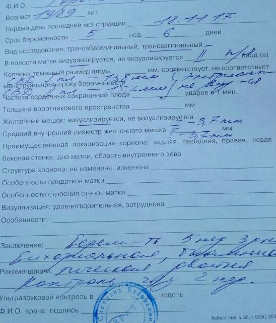 Вы знаете не задавалась вопросом, сейчас посмотрела на сроке 5-6 недель (от последнего цикла) КТР 6мм, но эта клиника мне вообще сказала, что у меня деформированное яйцо, скорее всего ЗБ, а то что двойня им даже в голову не пришло