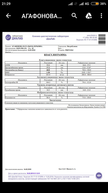 это после месяца Вессел Дуеф и после 3-х уколов Клексан 0,4. Д-димер 0,16 при норме до 0,5.TanR