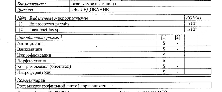 У вас во влагалище живет бактерия энтерококк фекалис, доктор назначит один из антибиотиков к которым она чувствительна