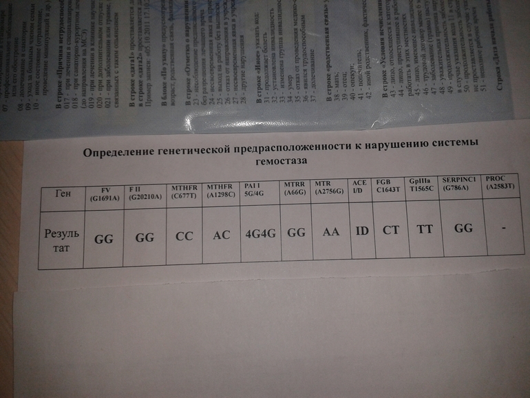 Поломки 2 в фолатном (повышение гомоцисцеина), ПАИ полная поломка (отслойки, гестозы, ЗБ) и фибриноген (повышение фибриногена в Б, холестерина), не сданы Ф13 и Ф7 - гены кровоточивости.