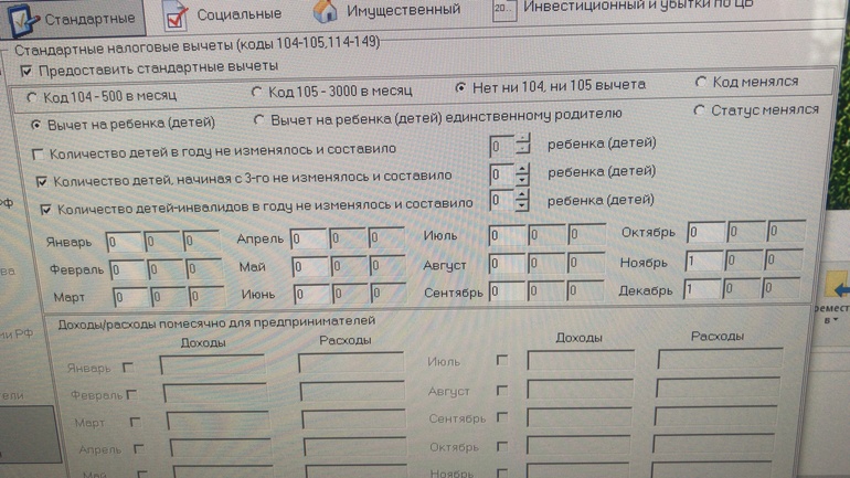 у вас вкладка открыта стандартные налоговые вычеты. На каждого ребенка полагается вычет. Ежемесячно 1200 руб. не облагается подоходным налогом. Т.е. вам вернут 156 руб. за каждый месяц. Обычно заявление в бухгалтерию пишут. И сразу с з/п не удерживают. У вас все равно с ноября 2016 не было дохода, облагаемого НДФЛ. Так что просто пропустите эту вкладку.