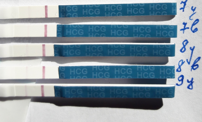 между первым и последним вижу! не вижу между 7 и 8 днем. она будто замерла. завтра на хгч, как бы дожить...) столько ждала этих полосочек, что сейчас просто дух захватывает...