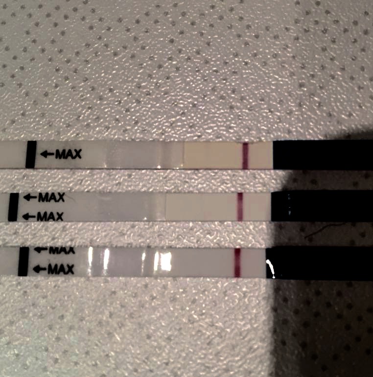 Разглядываем тесты // пока ждём результат ХГЧДевочки, я уже извелась вся. Сегодня днем сделала первый тест (верхний) и ну точно увидела на нем слабенькую полоску. Я такой в жизни не видела.