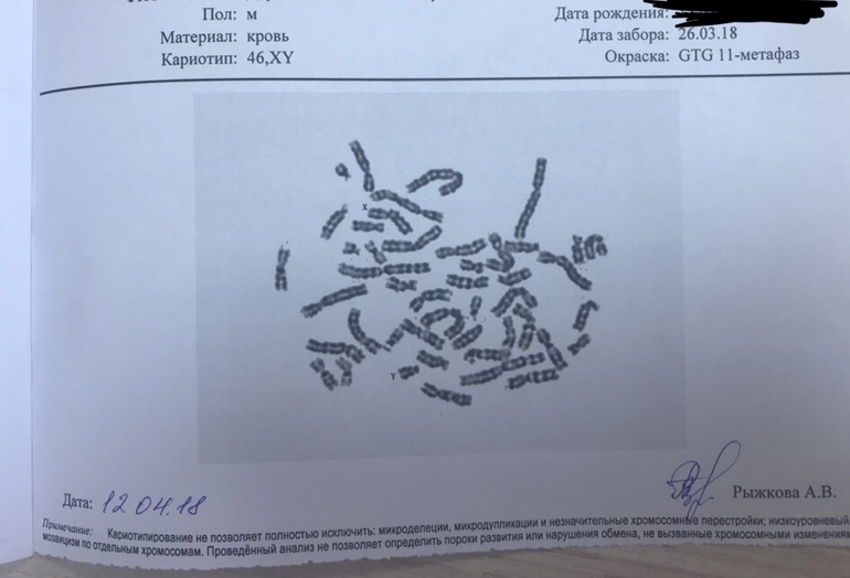 Не нужно смущаться из-за стандартных надписей. Все хорошо у вас. Мне генетик в центре репродукции Генезис объясняла, про кариотип - там видят достаточно грубые поломки, которые видны при увеличении под микроскопом. Дальнейшее и более глубокое обследование назначается, когда есть для этого серьезные подозрения. У вас все хорошо - радуйтесь!
