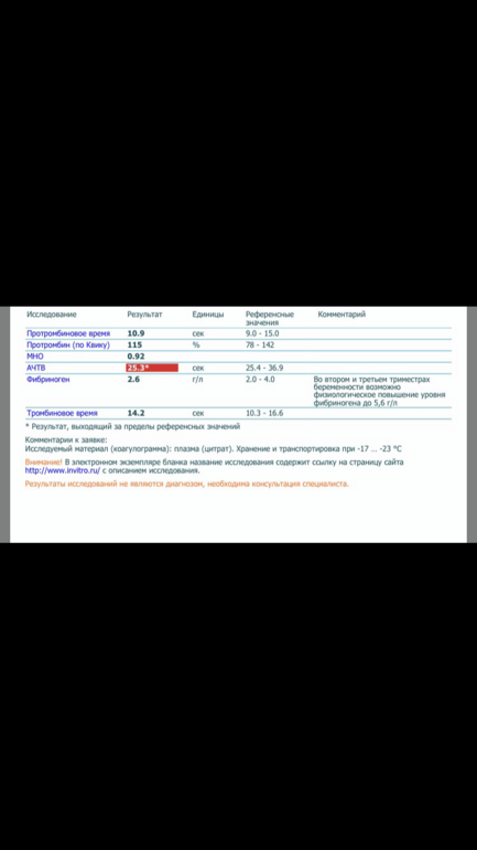 Анализы и процедуры. Помощь в расшифровке результатовДевочки!Подскажите-в протокол возьмут с таким ачтв???(ддимер и антитромбин в норме)..хотя месяц назад ещё сдавала все ок было...