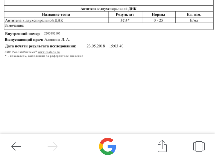 Анализы и процедуры. Помощь в расшифровке результатовОн назначил мне кучу анализов..в том числе и антитела к двуспиральный ДНК,результат плохой..пока ничего не понимаю..,он сказал ждать всех анализов,а потом к нему за консультацией онлайн...Что жить буду и беременнить можно ..не переживайте..(((!!но начитавшись как всегда в инете состояние предобморочный ...Кто сталкивался ..расскажите пожалуйста!