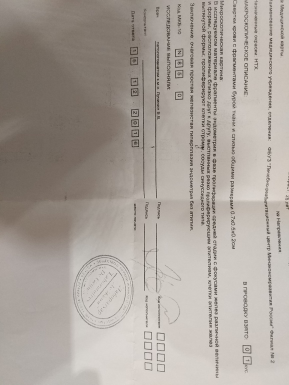 Лапароскопия, гистероскопияДевочки, когда-то давно еще в декабре 16 года делала лапору и гистероскопию. Во вложении результат биопсии эндометрия. Делала в конце цикла. Выскабливание не делали так и...как вам резульиат? Что значит заключение?