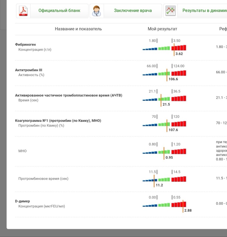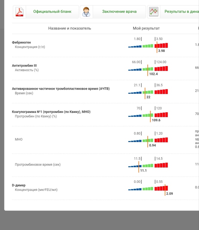 Ну фибриноген немного пополз вниз, это радует. Ддимер конечно развлекается. У меея предрасположенность к тромбофилии.