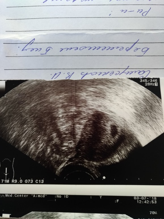 Желточного мешка, эмбриона и сб, как и предполагалось еще не видно (но надежда была).