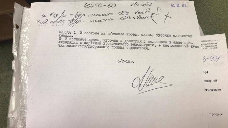У меня все расписано - осмотр камерой до, после, все что увидено , все что получено и подробная гистология. Перинатальный центр. Самая первая гистера тоже в перинатальном , но в другом, там вообще на 3-х листах.
