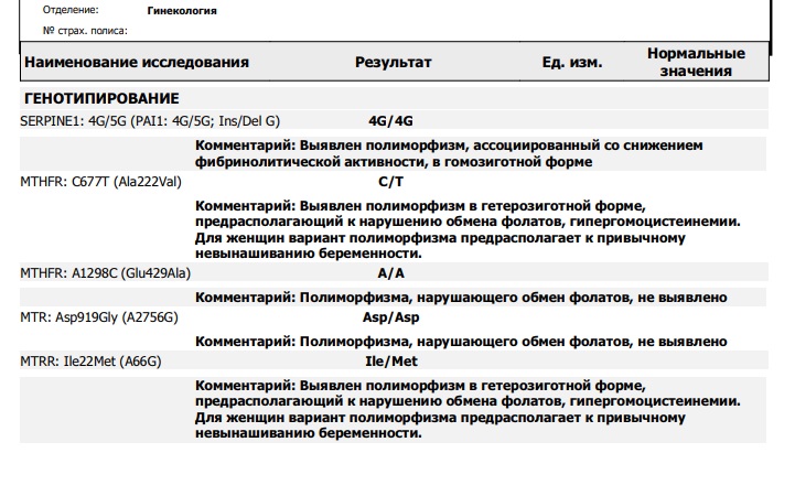 По результатам анализов у меня выявлена наследственная тромбофилия- гомозигота по гену Pai -1