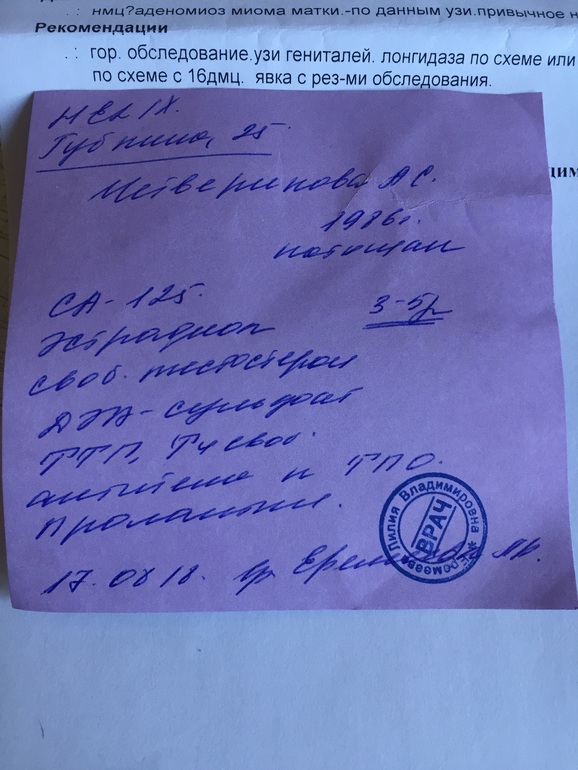 Сегодня очередной раз пошла к новому врачу , рассказала-показала все свои обследования и она делает заключение, что причина неудачи в невынашивании это все ЭНДОМЕТРИОЗ. Ну по УЗИ у меня нет его, некоторые УЗИ мне ставят миому , она уверяет меня это и есть эндометриоз , а не миома.