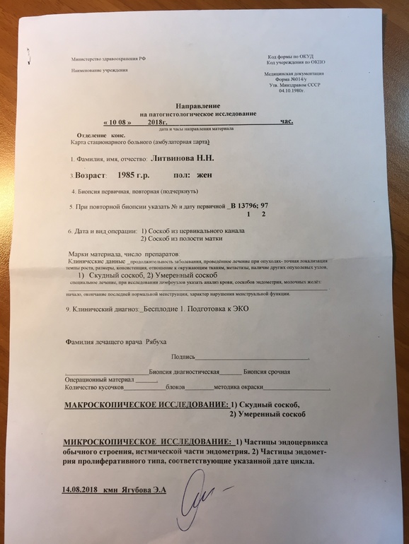 Анализы и процедуры. Помощь в расшифровке результатовВсем доброго дня!!! Вот и я прошла эту процедуру, благодаря вам я выбрала клинику практической медицины на Динамо, врач Рябуха В.В.! Все прошло на отлично!!! После наркоза проснулась и через 1,5 часа меня уже отпустили. Прошу посмотрите результат гистологи, к врачу ещё не скоро просто.