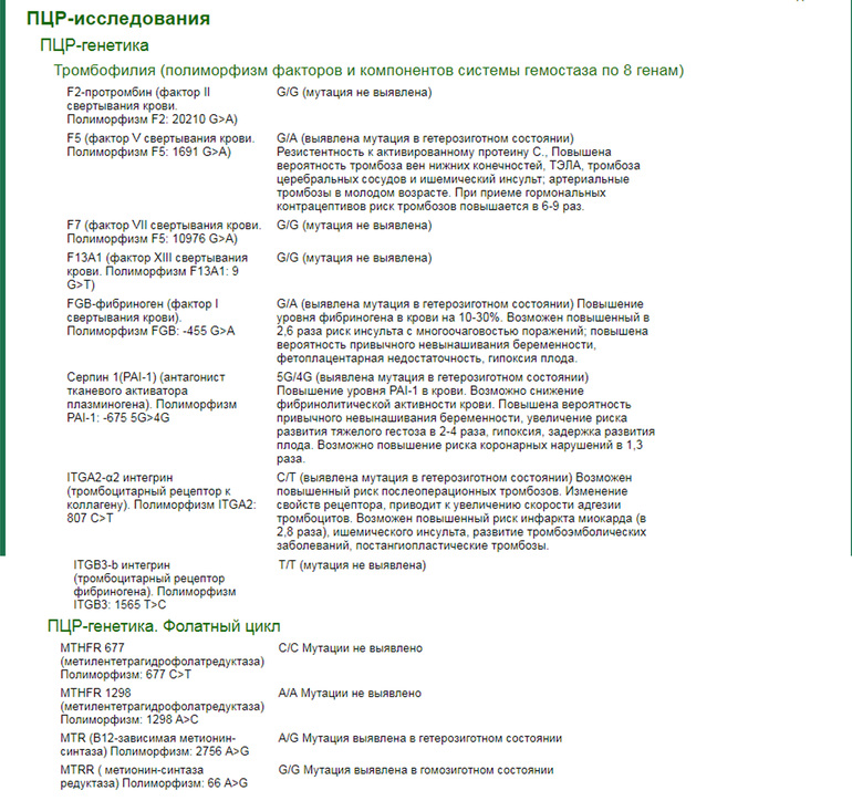 ПОМОГИТЕ СОВЕТОМ. Мутации тромбофилии и фолатного цикла