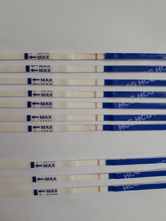 на фото бледнее получаются полоски. На 6 дпп сдала хгч, зачем, непонятно, результат 35, думаю скорее хвост от укола
