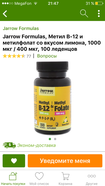 Thorne Research, Methyl-Guard, купленный на айхербе, по одной капсуле. Гомик снизился до 5,3 с 8,3 за две недели.