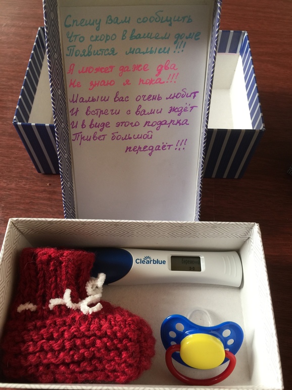 Опросы, анкеты, голосованияСегодня 14дпп, утром сдала последний хгч и д-димер. На 11дпп хгч был 504. И так у нас совпало что у мужа отца сегодня юбилей 55 лет( выходит на пенсию) У них нет внуков ещё и они их ждут уже давно. Решила на юбилей сообщить им эту новость, но долго думала как. И решила сделать такой маленький подарочек, связала пинеточку и все упаковала в коробочку. Как вы думаете понравится,