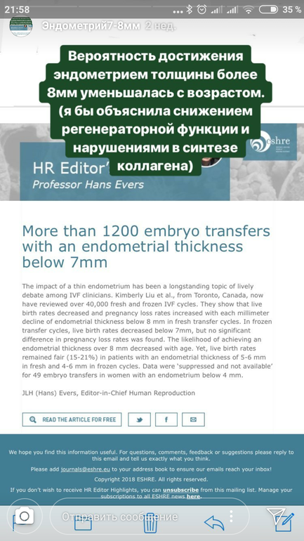Эндометрий и все о нем (лечение, наращивание, улучшение)Зашла в инстаграм Юлии Фетисовой и в актуальном увидела про эндометрий.Нашла оригинал статьи, перевела через онлайн-переводчик.
