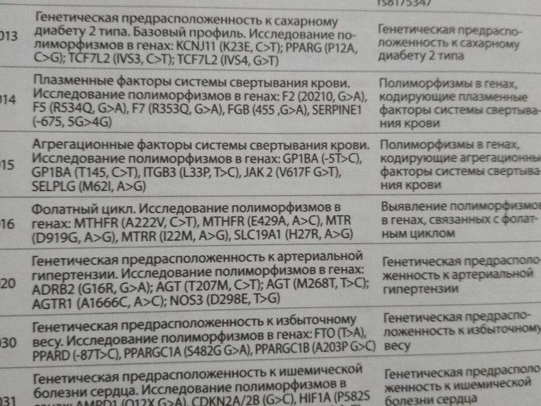 По нарушениям гемостаза у них есть комплекс из 8 точек генома (стоит около 4 тыс.) и пакет ОК, так и называется «пакет ОК» куда входят мутации F2 и F5. Стоит около 900 руб. Я сдавала последнее, пакет ОК. Вот жду результат.