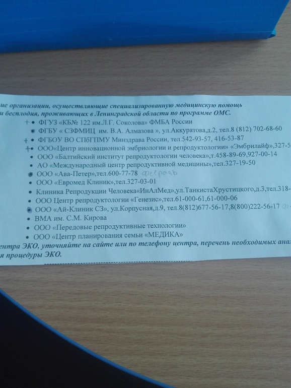 ЭКО по квоте и полису ОМСПривет помогите выбра