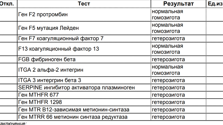 Анализы и процедуры. Помощь в расшифровке результатовДоброе утро, девочки. Сдавала анализы на мутации фолатного цикла и гемостаза. В результате не понимаю ничего, конечно же. Но чует чуйка, что это отклонения.