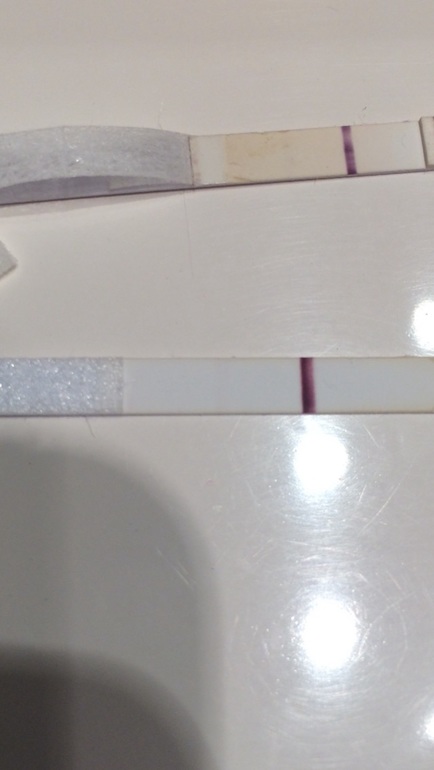 Разглядываем тесты // пока ждём результат ХГЧСделала после работы тест, а там она! Плохо видно, конечно,особенно на фото, но вполне понятно, что она там есть. Особенно рядом с кристально чистым вчерашним.