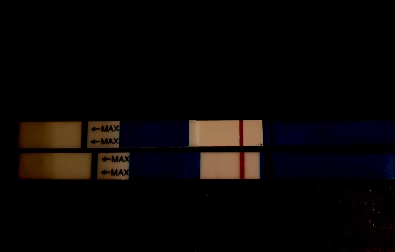Сделала после работы тест, а там она! Плохо видно, конечно,особенно на фото, но вполне понятно, что она там есть. Особенно рядом с кристально чистым вчерашним.
