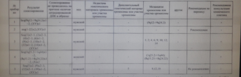 И еще такой нюанс есть: расшифровкой результатов занимаются генетики. И если грубые поломки, типа трисомий и моносомий видны явно, то всякие делеции и дупликации (поломки в участках хромосом) - это уже ювелирная работа и вот тут возможно ошибочная трактовка.