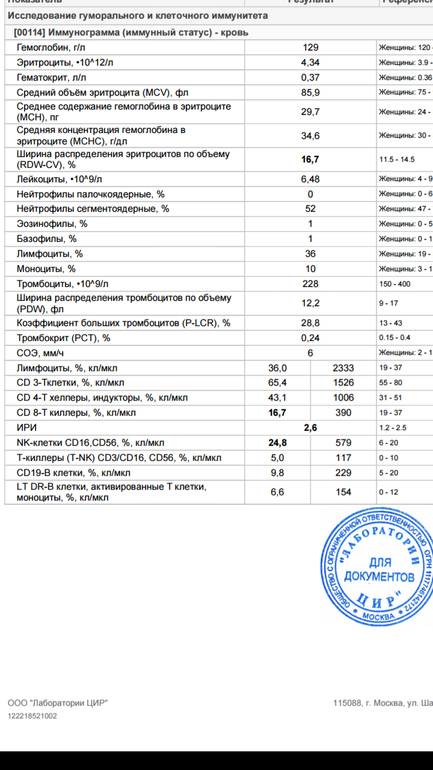 Мне врач говорила что здесь главное чтобы t-килеры были в норме, а их отдельно не смотрят, только в комплексе.