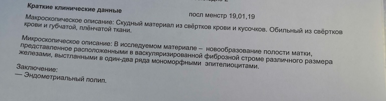 Анализы и процедуры. Помощь в расшифровке результатовДевочки, всем привет! 30 января была гистера, выскабливание не было. Сегодня забрала результаты гистологии.