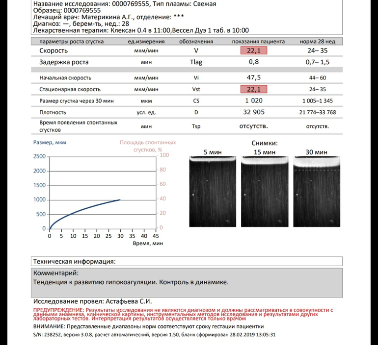 Дано: беременность разнополой двойней ди ди, 28 недель. В 24 недели на доплере было все прекрасно. Детки практически одинаковые по весу (девочка даже чуть крупнее), кровотоки в норме. 28.02 был очередной доплер и врач поставил ХрПН 1б степени (нарушение кровотока в пуповине у девочки) + наметилось отставание в весе от мальчика около 200 грамм ( М: 1300-1400, Д: 1100-1200. В тот же день я сдала тромбодинамику. Остальные анализы у меня были на руках. В этот же день посетила гематолога. Он откорректировал назначения (было 4000 клексана, 1 таблетка Вессел Дуэ Ф с утра и 1 таблетка кардиомагнила на ночь) - сказал все отменить, а Клексан добавить до 8000 по 4000 утром и вечером. После гематолога посетила своего врача в ПЦ - она согласилась с назначениями + назначила начать лечение ХрПН в условиях стационара (капельницы, мониторинг допплер и коагулограммы). Тромбодинамики моей никто из них не видел, повторюсь, т.к. сдавала я ее в тот же день с утра. Вчера мне прислали результат. Я в шоке... Тенденция к гипокоагуляции🙄 Ничего не понимаю вообще. Написала своему врачу, отправила ей результат. Она все-равно настаивает на 8000 клексана, мотивируя тем, что АЧТВ низковат + фибриноген шкалит. Но разве клексан влияет на фибриноген?! И вообще, я не понимаю, как такое возможно - тенденция к гипокоагуляции при таком фибриногене🤦 Боюсь колоть 8000 клексана. Вдруг хуже будет😖 Нужен, в общем, мозговой штурм🙏 Результаты всех анализов ниже: