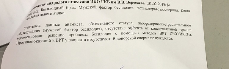 Андролог написал заключение? Конкретно по тексту. Вот ради этого текста (на основании его я получила квоту) и сдавали гормоны, узи, инфекции, витамины и тд