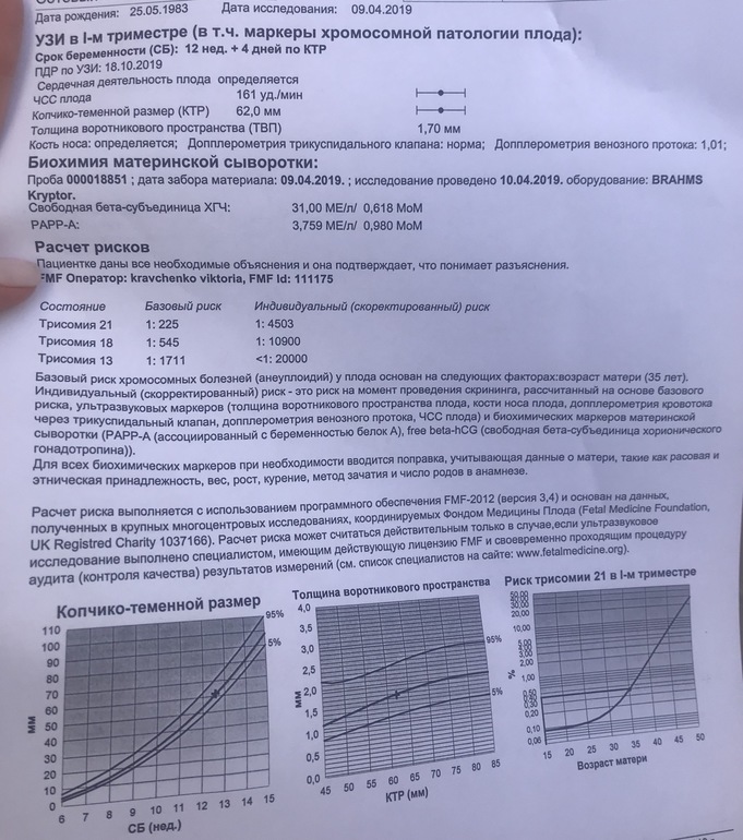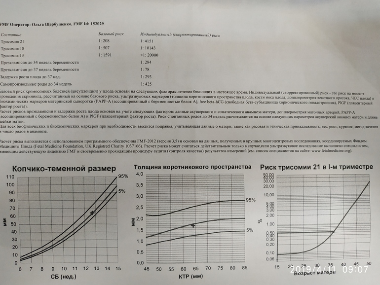 А вот я со своим результатами после первого скрининга у врача ещё не была ,вы не могли бы глянуть его ..может тоже есть что нибудь подобное ..