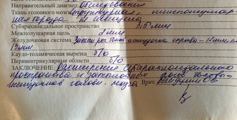 Анализы и процедуры. Помощь в расшифровке результатовДобрый день! Были на узи, написали вот такое заключение. Нахожусь в предобморочном состоянии, может сходить переделать платно? Сын родился крупный 4200/60, в поведении ни чего не замечаем: спит хорошо, улыбается. Не любит лежать на животе, держать голову у нас плохо получается. Это может быть связано с таким заключением? Спасибо.