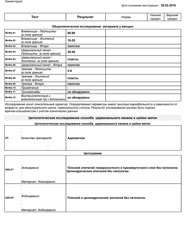 Ну я сходила к репродуктологу, она сказала что это нормально. И даже не отправила передавать. Потому что фемофлор 16 в норме, цитология в норме, нет смысла передавать - как следствие этот мазок из за предстоящих М такой получился